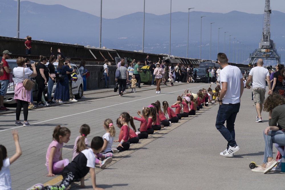 “On Rijeka’s Molo longa (Rijeka’s promenade), today, for the second time an event called “The longest gymnastic split in the world” took place, which is an announcement of the DOBRO World Cup in Osijek. This is to make young people, as well as everyone else, aware of sports and a healthy lifestyle. Many gymnasts from our city came, as well as dancers and other athletes accompanied by their parents and friends. We hope that the postcard from Rijeka left in the same cheerful tone as we experienced at the place itself, and that our message went far.” said Diana Lukašić, from GK Rijeka.