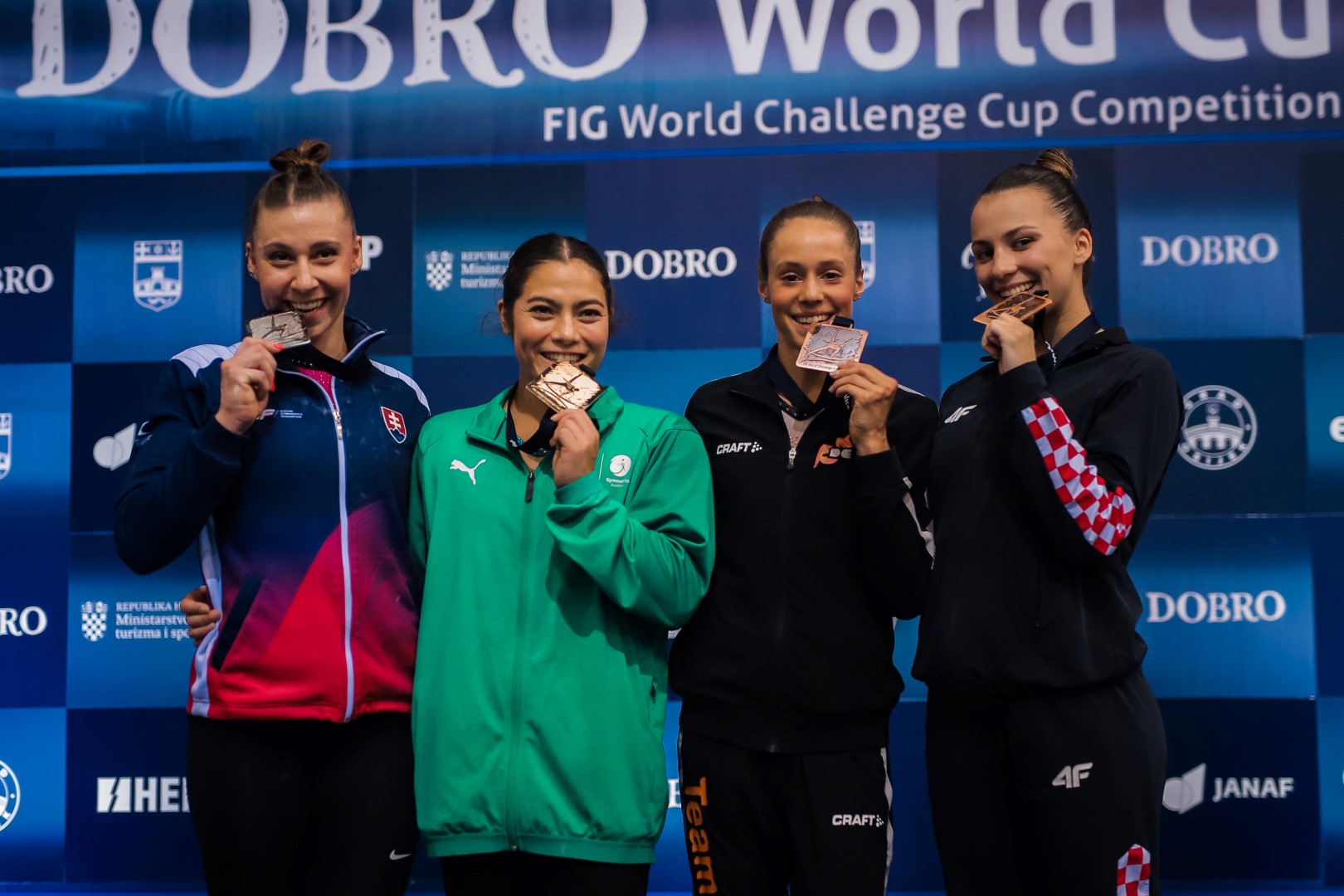 “I am very happy. This is my first final in Osijek. I know that the performance was not like in the qualifications, two days ago I performed the exercise much better, I had one leg lift for a deduction of 0.5 for sure, it was uncertain until the end. There were three identical final scores, 12,666. I feel sorry for Christina, it would be great if she was on the podium too. Two weeks ago in Varna, I won my first medal, it was my big wish, and here my goal was to enter the final. Just to feel that great atmosphere, incredible audience. This is one of the best World Cups and I end up winning bronze. Perfectly. The fans were great, and we are especially glad that President Milanović watched us live,” said Tina Zelčić.