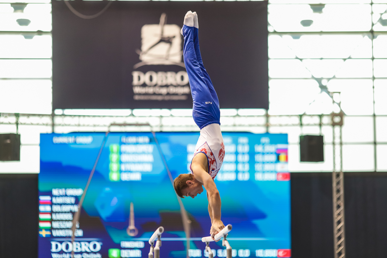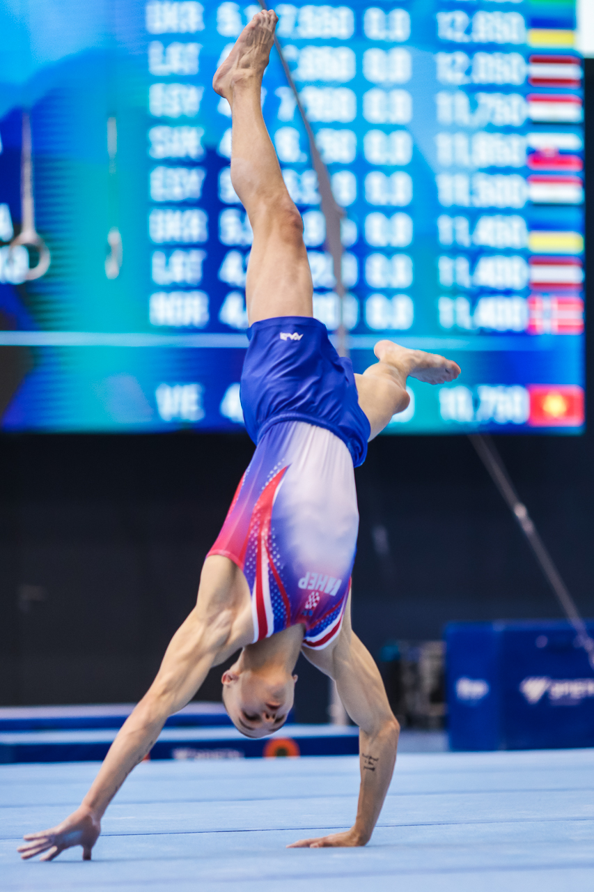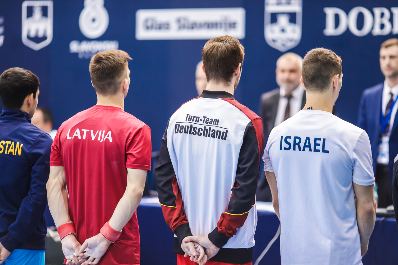 Drugi Osječanin, mladi 19-godišnji Aurel Benović pred domaćom se publikom, nakon prošlogodišnjeg devetog mjesta, plasirao u svoje prvo finale u karijeri! Aurel je izvrsnom izvedbom kvalifikacije završio kao četvrti, a za svoju je vježbu ocjenjen s visokih 14.100. Prvi je na parteru bio odlični Izraelac Artem Dolgopyat (14.900), drugi Čileanac Tomas Gonzalez (14.400), a treći Rus Kirill Prokopev (14.350).